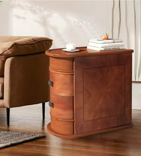 2-Drawer Solid Wood Narrow End Table, No Assembly Required Narrow Sofa Side Table for Living Room, Vintage Slim Nightstand Bedside Table for Bedroom Small Spaces