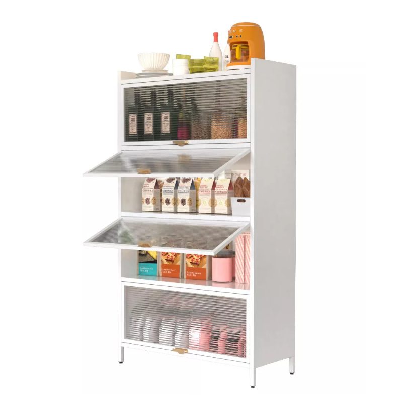 Visualization Cabinet Door: The metal pantry cabinet adopts a detachable wave pattern flip-type PC door panel, translucent door panel, stylish appearance, durable and dustproof.
