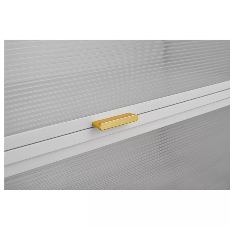 Elevate your home organization with the Fluted Flip Door Storage Cabinet. Featuring fluted glass, metal accents, and four spacious shelves, it offers stylish, durable storage for kitchens, living rooms, or offices. The fenced top adds extra display space, combining elegance with functionality.