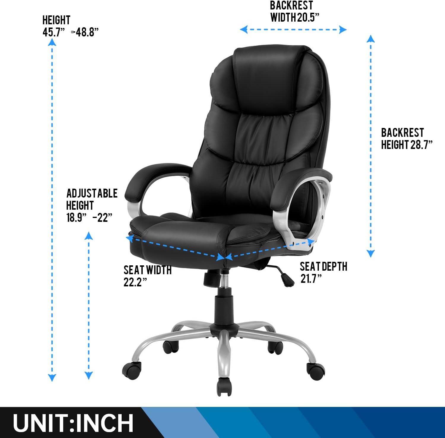 Premium Office Chair Computer High Back Adjustable Ergonomic Desk Chair Executive PU Leather Swivel Task Chair with Armrests Lumbar Support (Black)